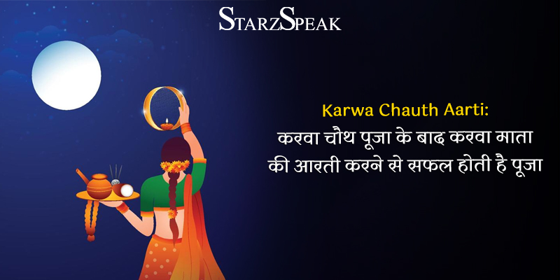 आरती (Karwa Chauth Aarti) करते समय थाली को गोल-गोल घुमाते हुए माता के नाम का स्मरण करते हैं। साथ में महिलाएं आरती गाती हैं — समूह में आरती गाना विशेष पुण्यदायक माना जाता है।